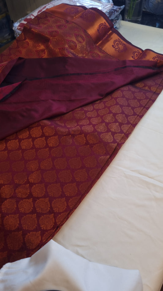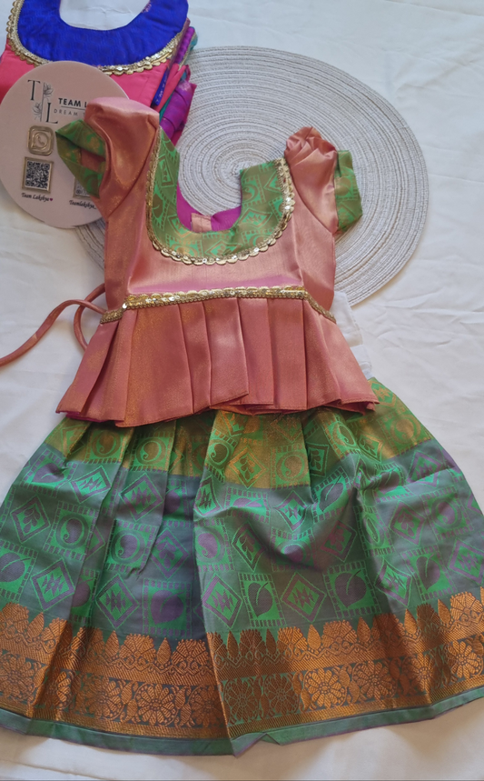 Premium pavada set for baby girls 0–1Y – silk blouse, frock & pavada with soft cotton lining.