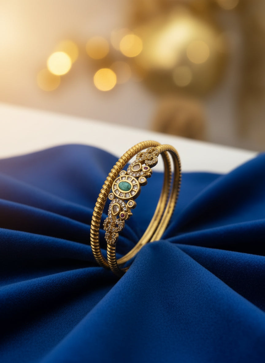 Beautifully crafted! Victorian antique bangles with semi precious stones. Our products are made with brass so Hypoallergenic!! Premium quality gold finish which looks like real gold and Premium quality!